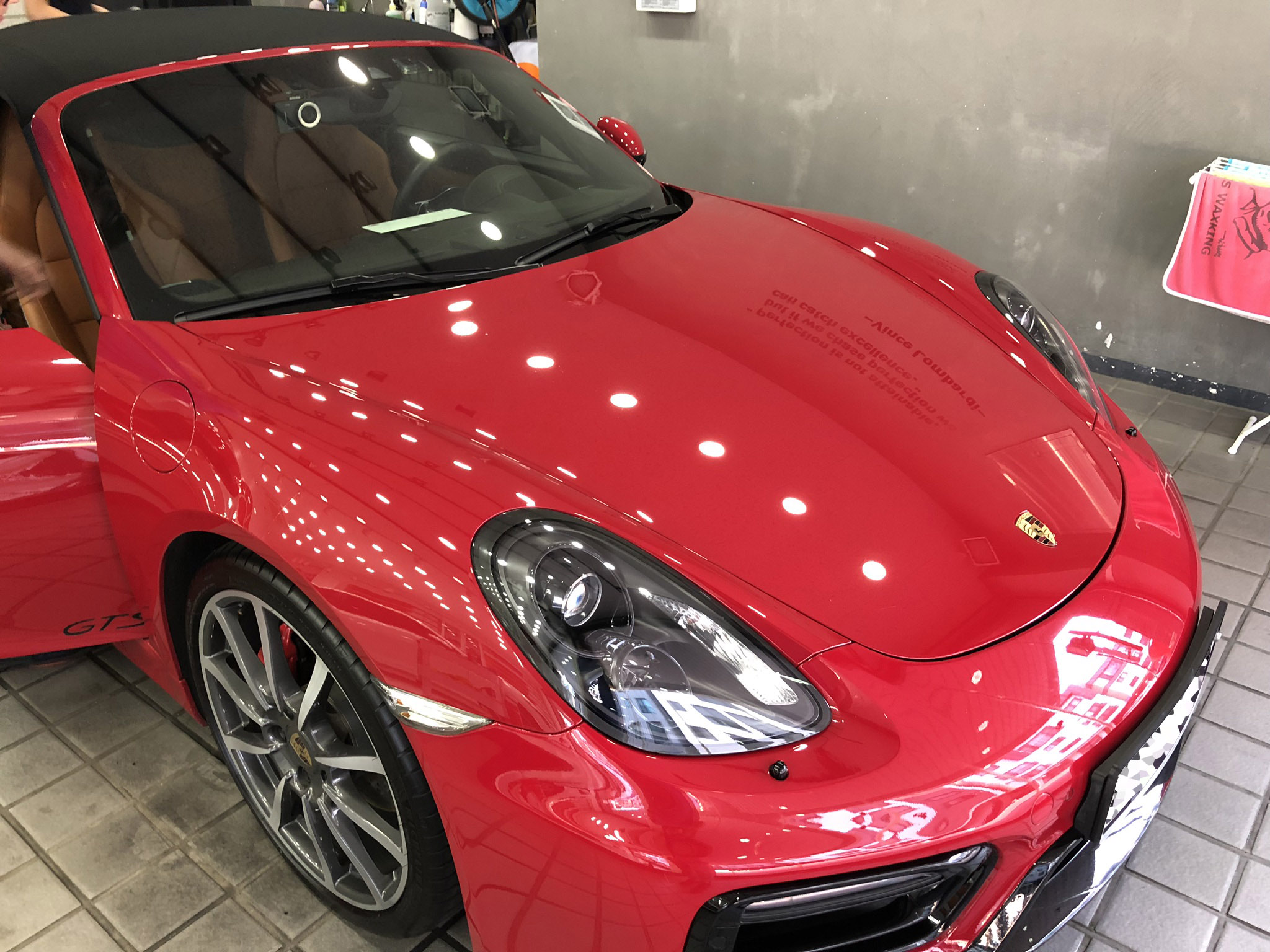 카민 레드와 환상적인 궁합을 자랑하는 앰버 오렌지색의 시트가 잘 보이지도 않고.