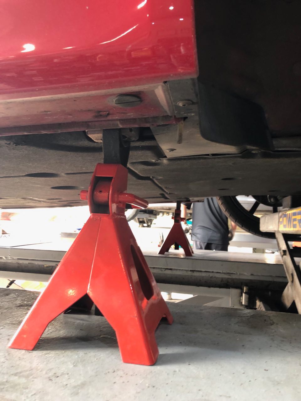 잭포인트에 스탠드 받치고 리프트는 내림. 헐. 이런 샵 첨봄.